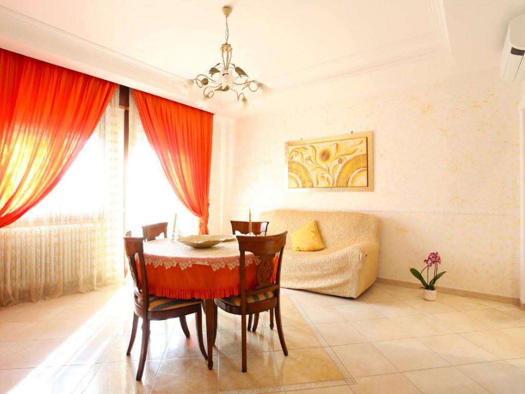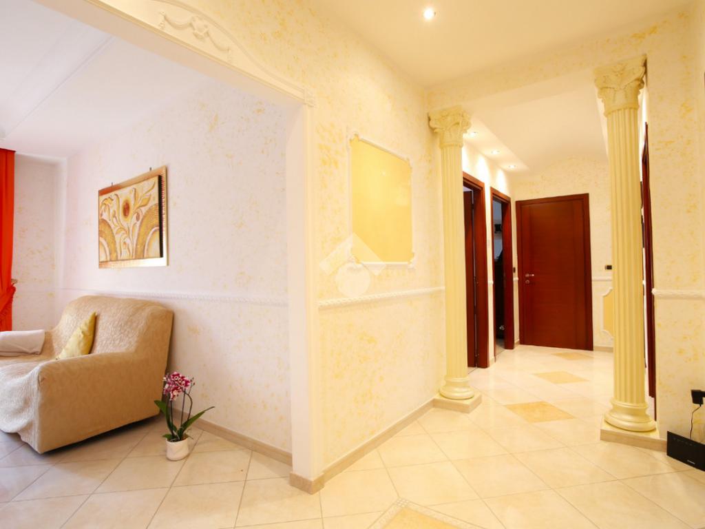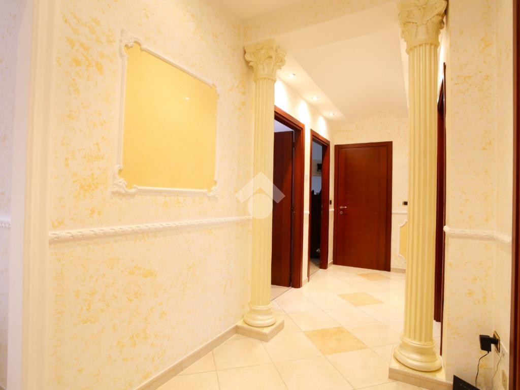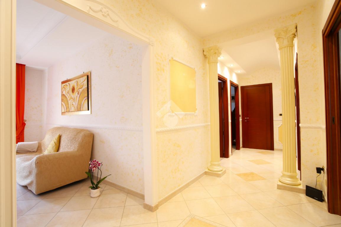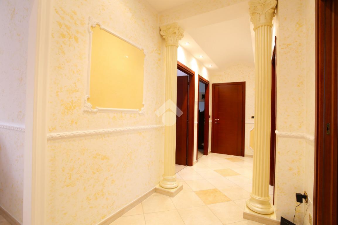 Entrando da una sicura porta blindata si viene accolti da uno spaziosissimo disimpegno. Una cucina abitabile (in gres porcellanato costruita su misura artigianalmente) da accesso al primo balcone, mentre il soggiorno luminoso di 20 mq accede al secondo balcone. La zona notte si compone di 2 camere matrimoniali di 17 mq e una cameretta. Il bagno principale è finestrato e con vasca mentre il secondo possiede una doccia e un lavabo ad oggi adibito anche come lavanderia.